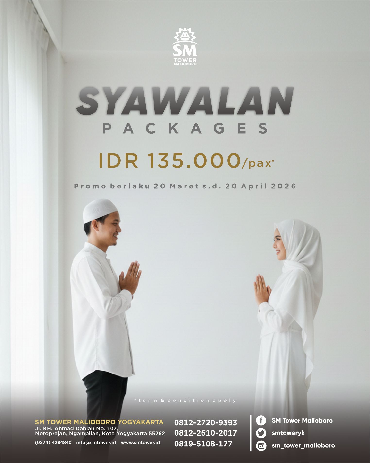 SM Tower Malioboro menyelenggarakan program Syawalan Packages dengan pilihan menu paket yang bisa kamu pilih sesuai dengan kebutuhanmu. Harga 135K/pax , berlaku khusus hanya selama bulan Syawal, yakni 20 Maret s.d. 20 April 2026.