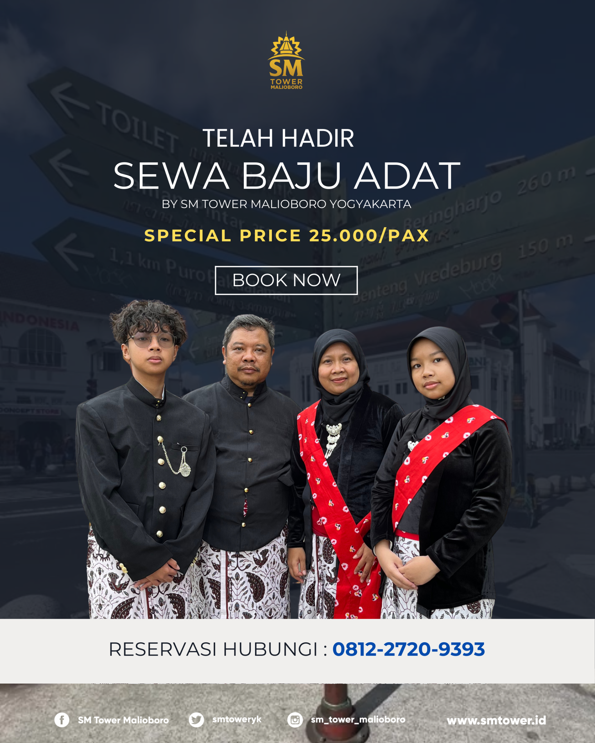 Dalam rangka memberikan pelayanan kepada para tamu SM Tower Malioboro Yogyakarta, di momen lebaran 1447 Hijriah ini kami menghadirkan koleksi baju adat tradisional jawa yang bisa dipesan melalui resepsionis kami dengan harga Rp 25.000/pax