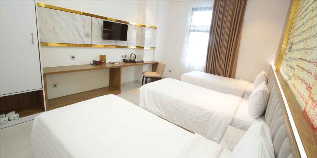 Business rooms, are modern & smart decorated, can accommodate up to 4 persons, equipped with high tech comforts such as high speed internet access, USB ports and smart TV. The room was 30.6 m2 large, its more comfortable guest room for staycation with family or group. We provide also book and magazine in the room for guest recommendation reading book.