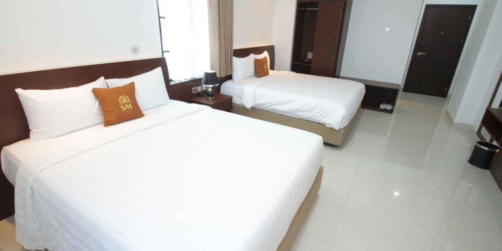 Our Deluxe Twin Bed room is real comfortable guest room that provide two single size bed also can accommodate up to two person, equipped with high tech comforts such as high speed internet access, USB ports and smart TV. The family leisure destination should be try this perfectible room in SM Tower & Convention. While your staycation planning, the SM Tower should be one of the smart choice hotel for your staycation. Al-Quran and prayer rug are available in the luxury deluxe room for Moslem trip.